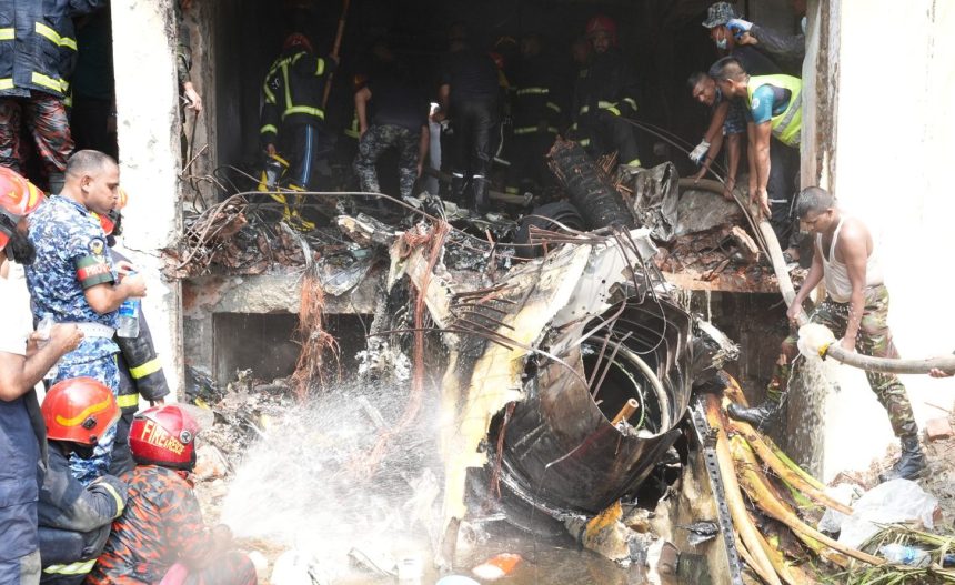 বিমান বিধ্বস্ত হওয়ার পরপরই আগুন ধরে যায়। মুহূর্তেই দোতলা ভবনজুড়ে ছড়িয়ে পড়ে ধোঁয়া ও আগুন। হতাহত হন স্কুলের শিক্ষক-শিক্ষার্থী, অভিভাবক ও স্থানীয় বাসিন্দারা।