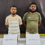 আটক ব্যক্তিরা হলেন— কক্সবাজার সদর উপজেলার উত্তর নুনিয়াছড়া এলাকার মো. মনির (৩২) এবং উখিয়ার মাদারবনিয়া এলাকার মঞ্জুর আলম (২৮)। র্যাব জানিয়েছে, গ্রেফতারকৃতদের বিরুদ্ধে প্রয়োজনীয় আইনানুগ ব্যবস্থা গ্রহণের জন্য ইয়াবাসহ উখিয়া থানায় হস্তান্তর করা হয়েছে।
