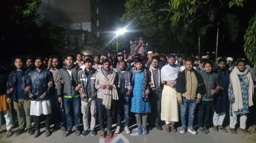 ইবি শাখা ছাত্রশিবিরের সেক্রেটারি ইউসুব আলী বলেন, “জুলাই আন্দোলনের পর থেকে এই গণমানুষের আন্দোলনকে ধ্বংস করতে বারবার ষড়যন্ত্র করছে। যারা জুলাই আন্দোলনকে প্রশ্নবিদ্ধ করতে চায়, তারা এদেশের শত্রু। জুলাইয়ের সনদ বাস্তবায়ন না হওয়া পর্যন্ত রাজপথ ছাড়বো না। ওসমান হাদীর মতো একজন যোদ্ধাকে গুলি করা মানে স্বাধীনতার আদর্শে গুলি চালানো। আমরা সেই গুলির জবাব রাজপথেই দেবো।”