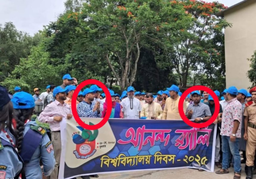 কয়েকজন শিক্ষক অভিযোগ জানিয়ে বলেন, আমরা র্যালিতে ছিলাম। কিন্তু ছাত্রদলের কয়কজন নেতা আমাদের ডিঙ্গিয়ে সামনের সারিতে ব্যানার ধরতে চলে আসে। এসময় বিশ্ববিদ্যালয়ের একজন শিক্ষকও তাদেরকে ব্যানার ধরতে উৎসাহিত করেন।