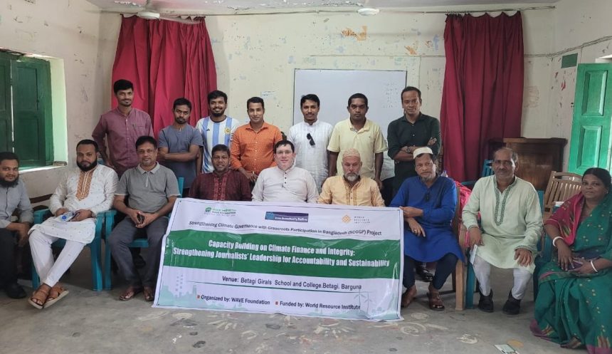জলবায়ু পরিবর্তন মোকাবিলায় সাংবাদিকদের ভূমিকা, চ্যালেঞ্জ এবং করণীয় বিষয় নিয়ে বরগুনার বেতাগীতে অনুষ্ঠিত হলো এক গুরুত্বপূর্ণ সভা। ওয়েভ ফাউন্ডেশনের উদ্যোগে আয়োজিত এই সভাটি “জলবায়ু অর্থায়ন ও সততার উপর সক্ষমতা বৃদ্ধি: জবাবদিহিতা ও টেকসইতার জন্য সাংবাদিকদের নেতৃত্ব শক্তিশালীকরণ” শীর্ষক প্রকল্পের অধীনে পরিচালিত হয়।