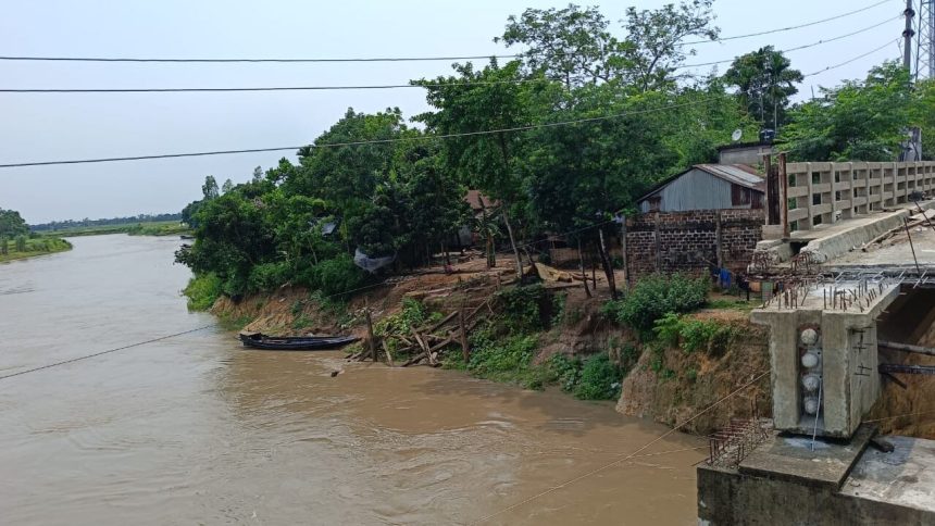 সুনামগঞ্জের দোয়ারাবাজার উপজেলার সুরমা ইউনিয়নের আলীপুর গ্রাম ও বাজার এলাকায় পাহাড়ি খাসিয়ামারা নদীর ভাঙনে ঘরবাড়ি, দোকানপাট ও ফসলি জমি একে একে নদীগর্ভে বিলীন হয়ে যাচ্ছে। স্থানীয়দের অভিযোগ, বছরের পর বছর ধরে নদীভাঙন চললেও পানি উন্নয়ন বোর্ড (পাউবো) বা সংশ্লিষ্ট কোনো সংস্থা কার্যকর পদক্ষেপ নেয়নি।