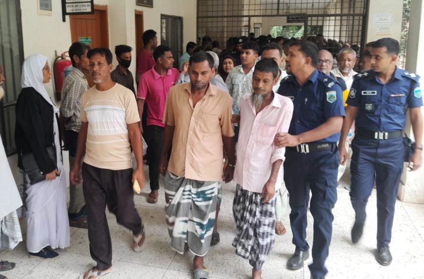 বিভিন্ন মেয়াদে সাজাপ্রাপ্ত আসামীরা হলেন- দুরুল হুদা (পলাতক), সেমাজুল ইসলাম, তরিকুল ইসলাম, আবুল কাশেম, রেজাউল করিম, ওয়াজেদ আলী, আবুল কালাম এবং আলিম ওরফে আলম।