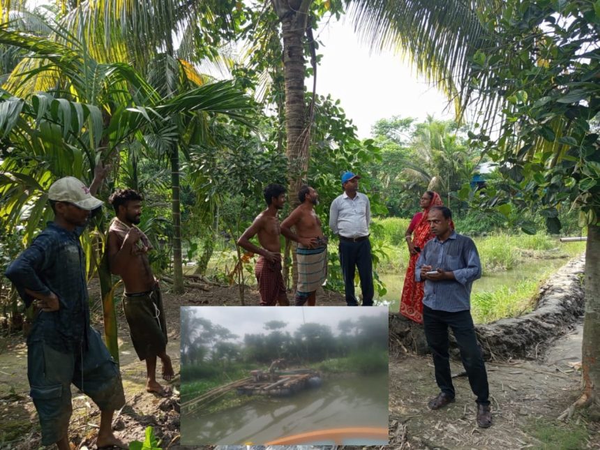 নাজিরপুরে সরকারি প্রকল্পের নামে খাল থেকে বালু উত্তোলন