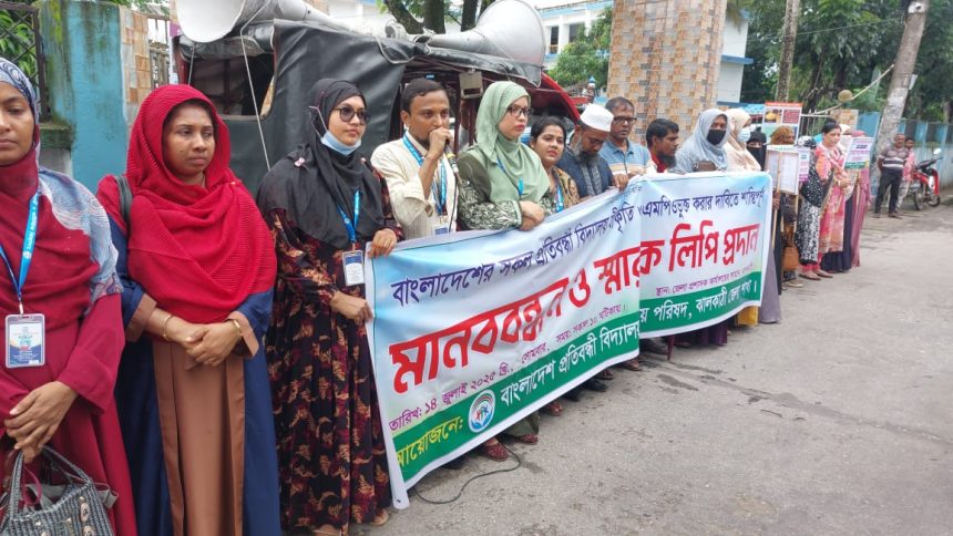 বাংলাদেশের সকল প্রতিবন্ধী বিদ্যালয়ের স্বীকৃতি ও এমপিও ভুক্তির দাবিতে ঝালকাঠিতে মানববন্ধন কর্মসূচি পালিত হয়েছে।