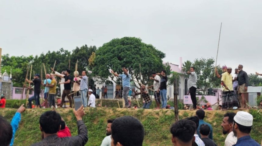 বিষয়টিকে কেন্দ্র করে গ্রামের মানুষ দুইটি পক্ষে বিভক্ত হয়ে দেশীয় অস্ত্রশস্ত্র নিয়ে আজ সকালে সংঘর্ষে লিপ্ত হয়। এই সংঘর্ষে উভয় পক্ষের অন্তত ১৫ জন আহত হন। আহতরা বিভিন্ন হাসপাতালে চিকিৎসা নেন।