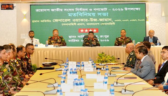 মঙ্গলবার রংপুর ও রাজশাহী সফরকালে ‘ইন এইড টু দ্য সিভিল পাওয়ার’-এর আওতায় মোতায়েন সেনাসদস্যদের কার্যক্রম পরিদর্শন এবং সংশ্লিষ্ট কর্মকর্তাদের সঙ্গে মতবিনিময় সভায় তিনি এ কথা বলেন। সেনাপ্রধান বলেন, নির্বাচনকালীন দায়িত্ব পালনে শৃঙ্খলা, ধৈর্য, সংযম ও নাগরিকবান্ধব আচরণ অত্যন্ত গুরুত্বপূর্ণ। আন্তঃপ্রাতিষ্ঠানিক সমন্বয়ের মাধ্যমে সার্বিক আইনশৃঙ্খলা পরিস্থিতি স্থিতিশীল রাখা সেনাবাহিনীর প্রধান অগ্রাধিকার।