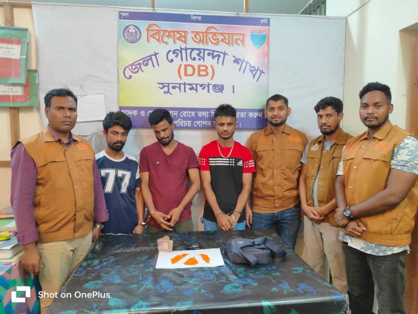 সুনামগঞ্জে ১৮ মামলার আসামি কুখ্যাত পংকজসহ তিন মাদক ব্যবসায়ীকে গ্রেফতার করা করেছে ডিবি পুলিশ। গ্রেফতারকৃতরা হলো সদর থানার দক্ষিণ আরপিন নগরের হাসিনা মঞ্জিল এলাকার বাসিন্দা আসাদুজ্জামান পংকজ (৩৫),পশ্চিম তেঘরিয়ার মো. লিমন মিয়া (৩২), দক্ষিণ আরপিন নগরের মো. শ্রাবনুজ্জামান (৩৪)।
